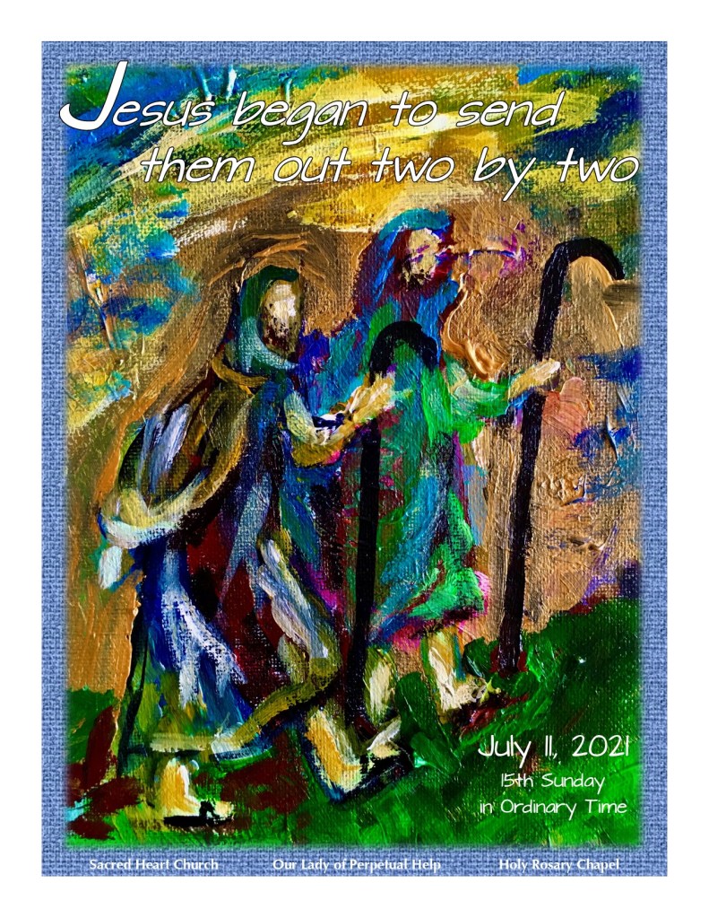 In Mark 6:7-13, today’s gospel, Jesus summons the Twelve and sends them out into the world, two by two. He is very specific about what not to take on this amazing journey— no food, no sack, no money in their belts. They should wear sandals, however. This commission has certainly changed through the generations. Yet, the core of Christ’s life travels in our lives as people baptized to bring Good News to the world.