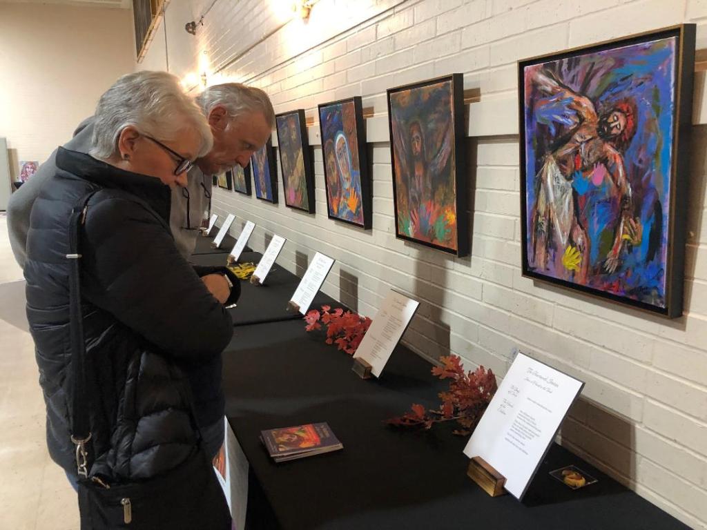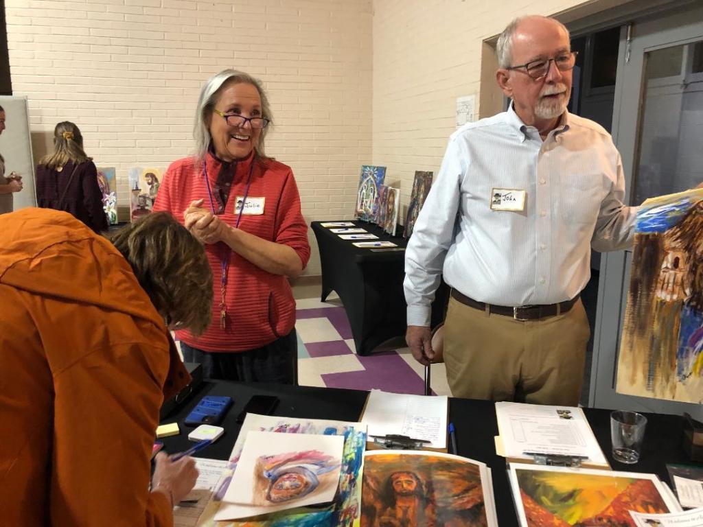 What a delightful evening! I have over 100 originals of my art for sale, in a drawing, silent auction, and simple donation. The art is a reflection of my time at Sacred Heart in these past eight years. I started painting only when I arrived in 2013 as pastor.